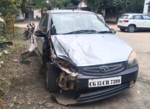 कार और बाइक की हुई जोरदार टक्कर, एक की मौत तीन घायल।