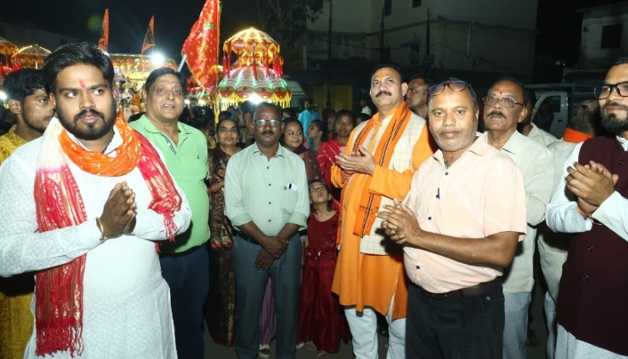 एमसीबी।हनुमान जयंती का पावन पर्व एमसीबी जिले के चिरमिरी नगर में बड़े ही हर्ष, उल्लास और श्रद्धा के साथ मनाया गया। पूरे दिन मंदिरों में पूजा-अर्चना, सुंदरकांड पाठ और भजन-कीर्तन का आयोजन होता रहा, वहीं शाम होते ही चिरमिरी नगर के हल्दीबाड़ी में भव्य शोभायात्रा निकाली गई, जिसमें हजारों की संख्या में श्रद्धालु शामिल हुए। शोभायात्रा में सजे-धजे भव्य रथ पर भगवान श्रीराम, लक्ष्मण, माता सीता और बजरंगबली विराजमान होकर नगर भ्रमण पर निकले। रथ के आगे-पीछे चल रही आकर्षक झांकियों ने सभी का मन मोह लिया। नगर के हल्दीबाड़ी पंखा दफ़ाई हनुमान मंदिर से प्रारंभ होकर यात्रा हल्दीबाड़ी के आमानाला हनुमान मंदिर में समाप्त हुआ जहां मार्गों से गुजरती शोभायात्रा का जगह-जगह स्वागत किया गया। इस दौरान स्थानीय विधायक एवं प्रदेश के स्वास्थ्य मंत्री श्याम बिहारी जायसवाल भी शोभायात्रा में शामिल हुए। मंत्री जायसवाल शोभायात्रा में भक्तों के बीच झूमते और नाचते नजर आए। वे लगभग आधे घंटे से अधिक समय तक शोभायात्रा में शामिल होकर श्रद्धालुओं के साथ भक्ति गीतों और ढोल-नगाड़ों की धुन पर झूमते रहे, जिसे देखकर कार्यकर्ताओं और श्रद्धालुओं में भारी उत्साह देखने को मिला। शोभायात्रा के दौरान जगह-जगह भोग भंडारे का आयोजन किया गया था, जहां श्रद्धालुओं के लिए लस्सी, पानी, हलवा और प्रसाद की व्यवस्था की गई थी। नगर के विभिन्न सामाजिक एवं धार्मिक संगठनों ने शोभायात्रा का स्वागत कर श्रद्धालुओं को प्रसाद वितरित किया। पूरे नगर में जय श्रीराम और जय बजरंगबली के जयकारों से वातावरण गूंज उठा। भक्ति, उत्साह और उल्लास से सराबोर इस आयोजन ने चिरमिरी की धार्मिक और सांस्कृतिक एकता की सुंदर झलक प्रस्तुत की। हनुमान जयंती के इस भव्य आयोजन को लेकर पूरे नगर में उत्साह का माहौल बना रहा।