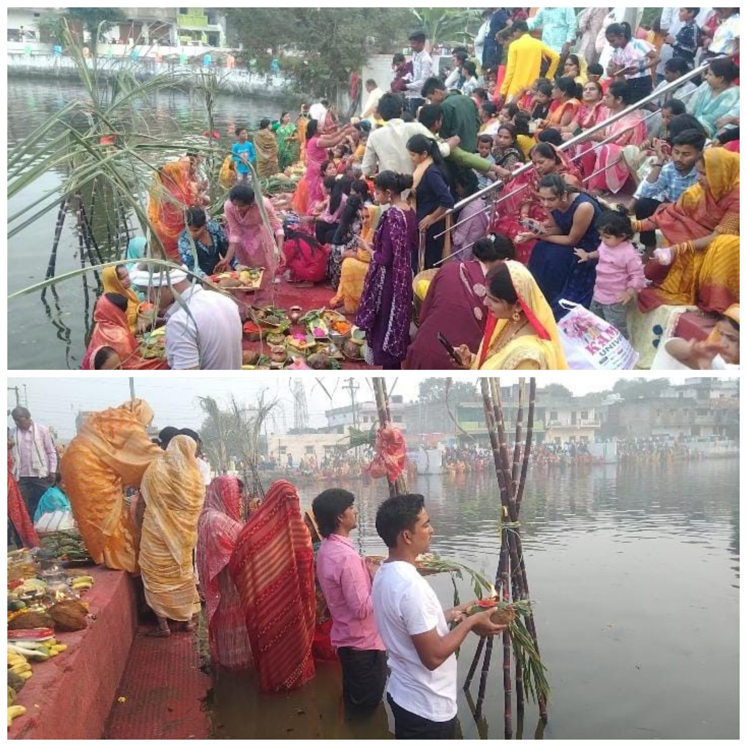 मनेन्द्रगढ़ में आस्था का महापर्व छठ पूजा,डूबते सूर्य को दिया गया अर्घ्य।