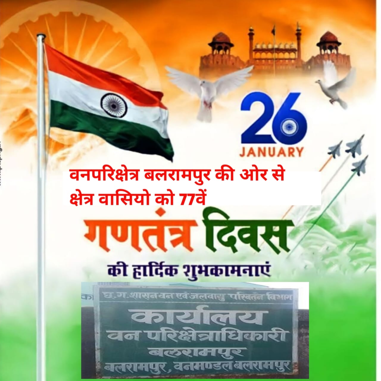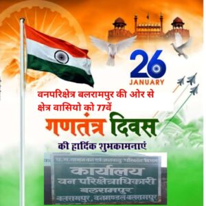 वनपरिक्षेत्र बलरामपुर की ओर से क्षेत्र वासियों को 77वें गणतंत्र दिवस की हार्दिक शुभकामनाएं