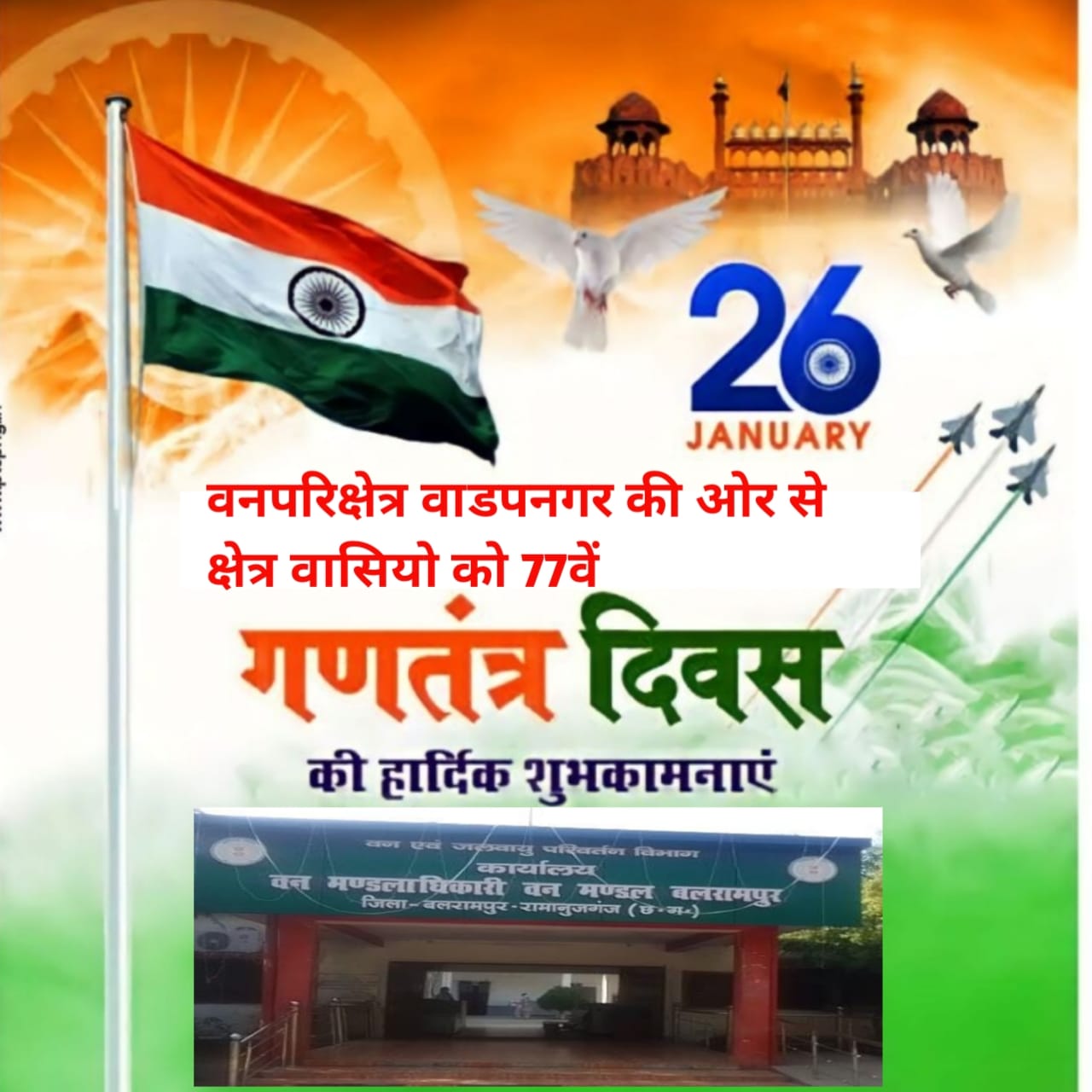 वनपरिक्षेत्र वाडपनगर की ओर से क्षेत्र वासियों को 77वें गणतंत्र दिवस की हार्दिक शुभकामनाएं