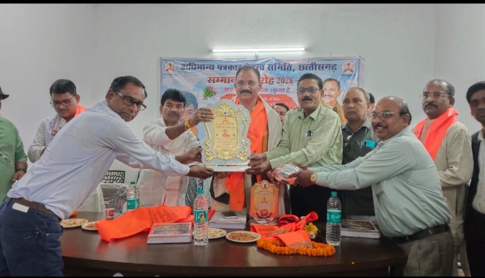 मनेंद्रगढ़। रविवार की शाम पत्रकार भवन चैनपुर में अधिमान्य पत्रकार नेतृत्व समिति द्वारा भव्य सम्मान समारोह का आयोजन किया गया। कार्यक्रम स्वास्थ्य मंत्री श्याम बिहारी जायसवाल के मुख्य आतिथ्य में सम्पन्न हुआ, जिसमें जिले भर के पत्रकारों की गरिमामयी उपस्थिति रही। कार्यक्रम की शुरुआत मां सरस्वती के छायाचित्र पर दीप प्रज्वलित कर की गई। इसके पश्चात अधिमान्य पत्रकार नेतृत्व समिति के प्रदेश अध्यक्ष द्वारा मुख्य अतिथि एवं मंचासीन अतिथियों का पुष्पगुच्छ भेंट कर स्वागत किया गया तथा सभी अतिथियों का शाल-श्रीफल देकर सम्मान किया गया। कार्यक्रम में अधिमान्य पत्रकार नेतृत्व समिति के राष्ट्रीय अध्यक्ष डल्लू कुमार सोनी, प्रदेश अध्यक्ष द्रोणाचार्य दुबे, भरतपुर-सोनहत विधानसभा के पूर्व विधायक गुलाब कमरों, जिला कांग्रेस कमेटी के जिलाध्यक्ष अशोक श्रीवास्तव, प्रदेश महासचिव धर्मेंद्र वस्त्रकार, मंडला जिलाध्यक्ष, एमसीबी प्रेस क्लब के अध्यक्ष रंजीत सिंह तथा चिरमिरी-खड़गवां पत्रकार संघ के अध्यक्ष राजेश उपाध्याय सहित बड़ी संख्या में जिले के पत्रकार उपस्थित रहे। कार्यक्रम को संबोधित करते हुए जिलाध्यक्ष अशोक श्रीवास्तव ने कहा कि नव नियुक्त प्रदेश अध्यक्ष द्रोणाचार्य दुबे अपनी जिम्मेदारियों का ईमानदारी से निर्वहन करेंगे, जिससे पत्रकारों के हितों की रक्षा होगी और पत्रकारिता के नए आयाम स्थापित होंगे। वहीं पूर्व विधायक गुलाब कमरों ने कहा कि ग्रामीण क्षेत्र में पत्रकारिता करने वाले पत्रकार भी अपनी मेहनत के बल पर प्रदेश और देश में पहचान बना सकते हैं और यह उसी का परिणाम है।वक्ताओं ने पत्रकारों की भूमिका, समाज में मीडिया की जिम्मेदारी तथा पत्रकार एकता पर अपने विचार व्यक्त किए। मुख्य अतिथि स्वास्थ्य मंत्री श्याम बिहारी जायसवाल ने अपने संबोधन में पत्रकारों को लोकतंत्र का मजबूत स्तंभ बताते हुए उनके कार्यों की सराहना की और हर संभव सहयोग का आश्वासन दिया। उन्होंने कहा कि ग्रामीण पत्रकारिता की ताकत ने ही आज कई पत्रकारों को बड़ी जिम्मेदारी तक पहुंचाया है, जो कलम की ताकत का प्रमाण है। इस दौरान आयोजक मंडल द्वारा मुख्य अतिथि सहित मंच पर आसीन समस्त अतिथियों को स्मृति चिन्ह भेंट कर सम्मानित किया गया। वही जिले के तीन वरिष्ठ पत्रकारों में राम बरनवाल, प्रवीण निशि और राम प्रसाद गुप्ता को शाल श्रीफल एवं मोमेंटो देकर सम्मानित किया गया।कार्यक्रम का मंच संचालन एमसीबी प्रेस क्लब के संरक्षक सतीश गुप्ता द्वारा किया गया तथा आभार प्रदर्शन प्रदेश महासचिव धर्मेंद्र वस्त्रकार ने किया। कार्यक्रम में जिले के विभिन्न संगठनों के बड़ी संख्या में पत्रकार उपस्थित रहे।