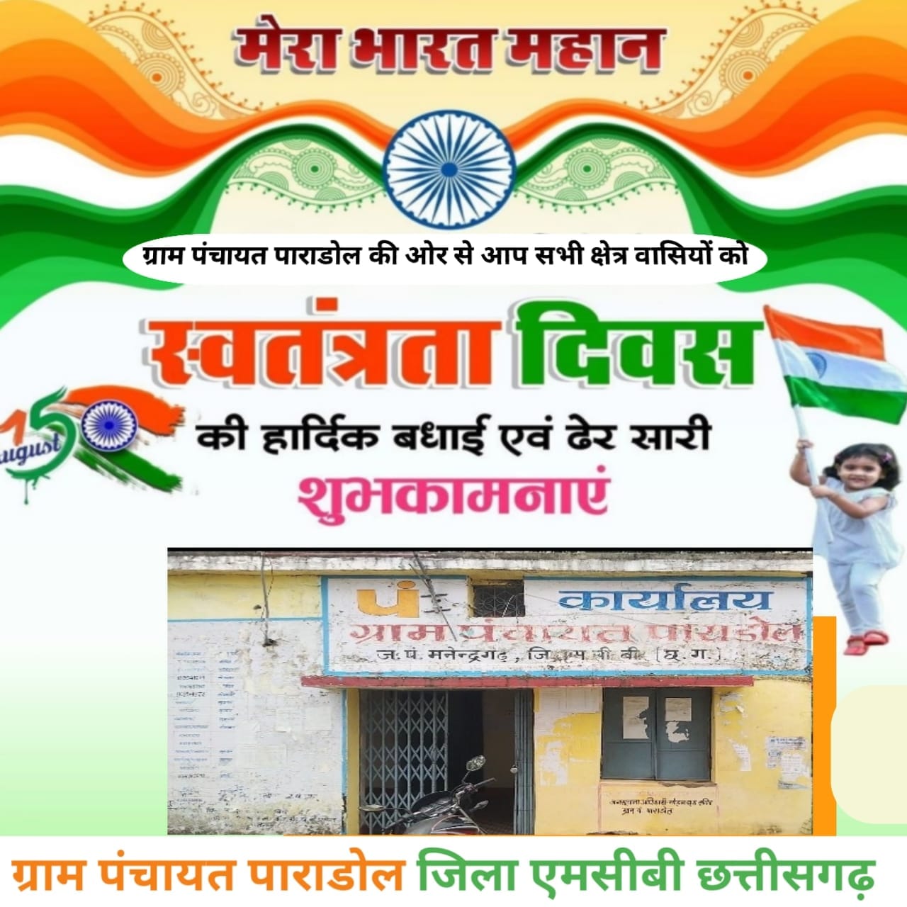 ग्राम पंचायत पाराडोल की ओर से समस्त क्षेत्र वासियों को स्वतंत्रता दिवस की हार्दिक शुभकामनाएं