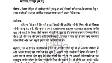 कैंसर से जूझ रहे अरविंद सोनी के ईलाज के लिए कांग्रेस प्रवक्ता ने स्वास्थ्य मंत्री से की 2 लाख रुपये की मदद की अपील